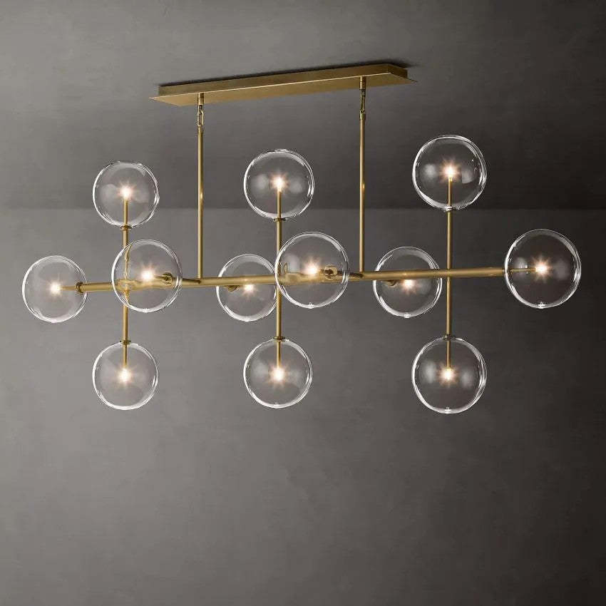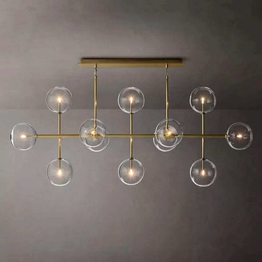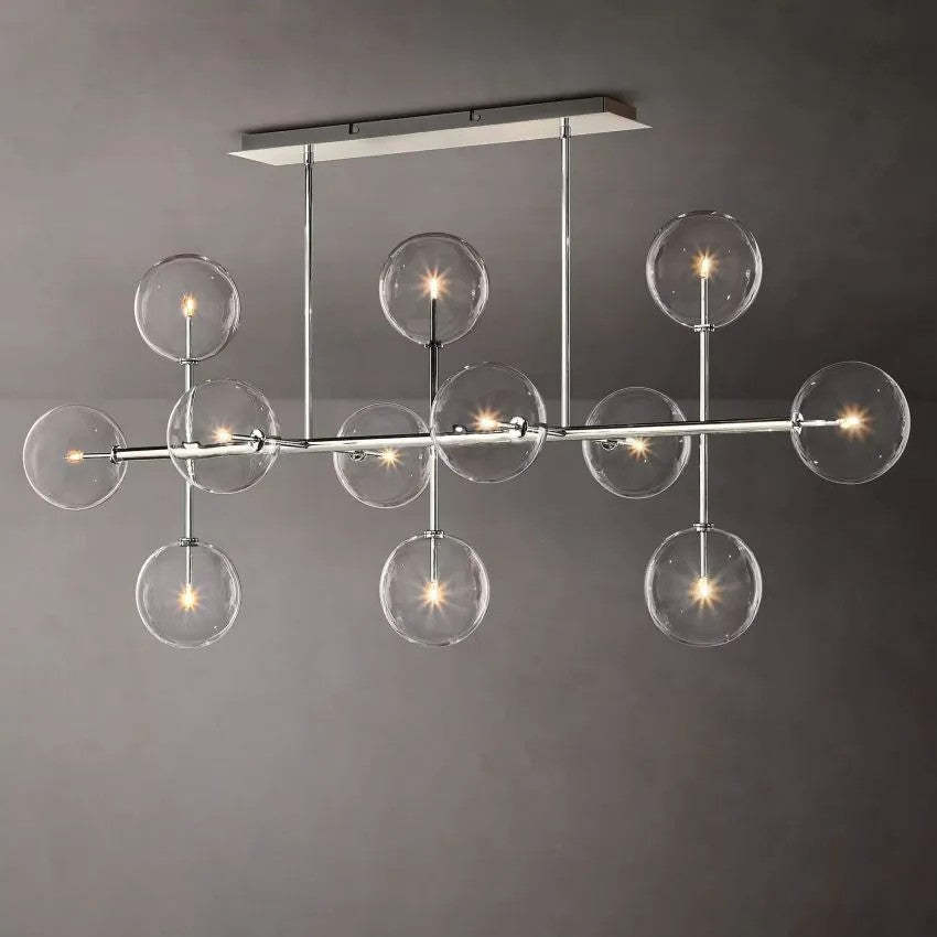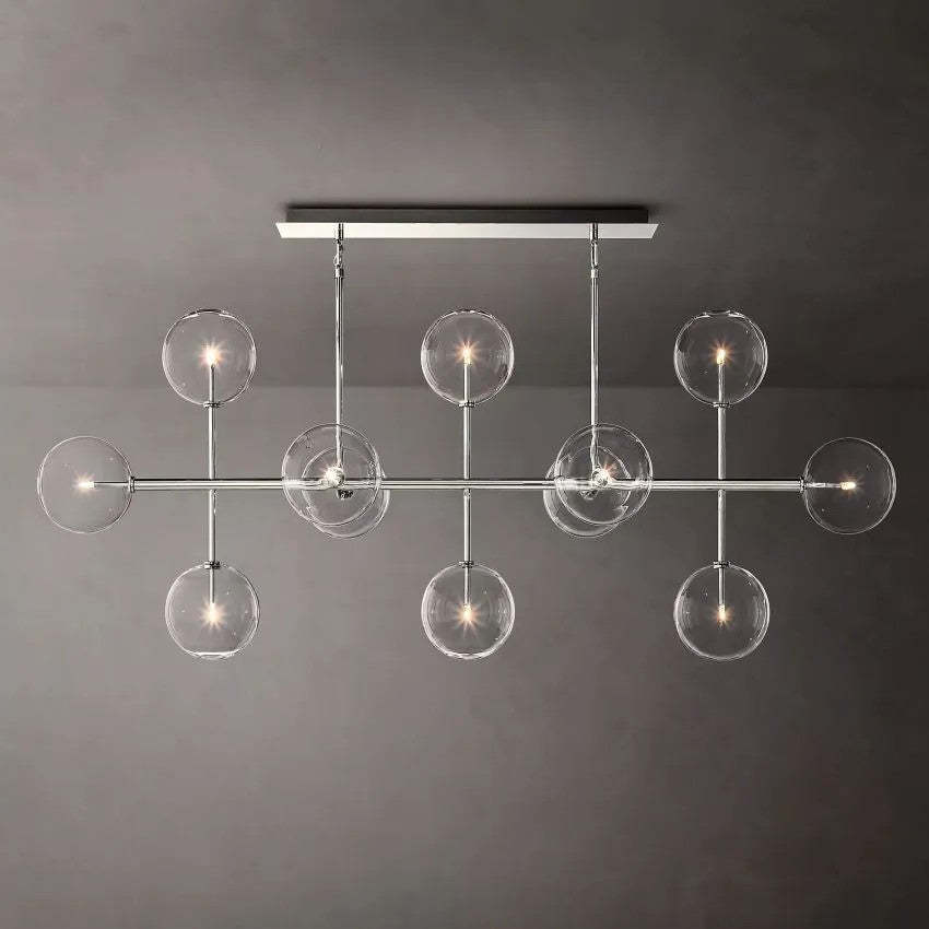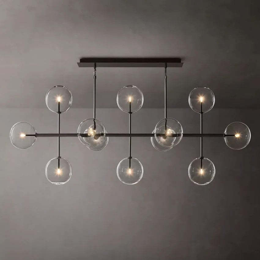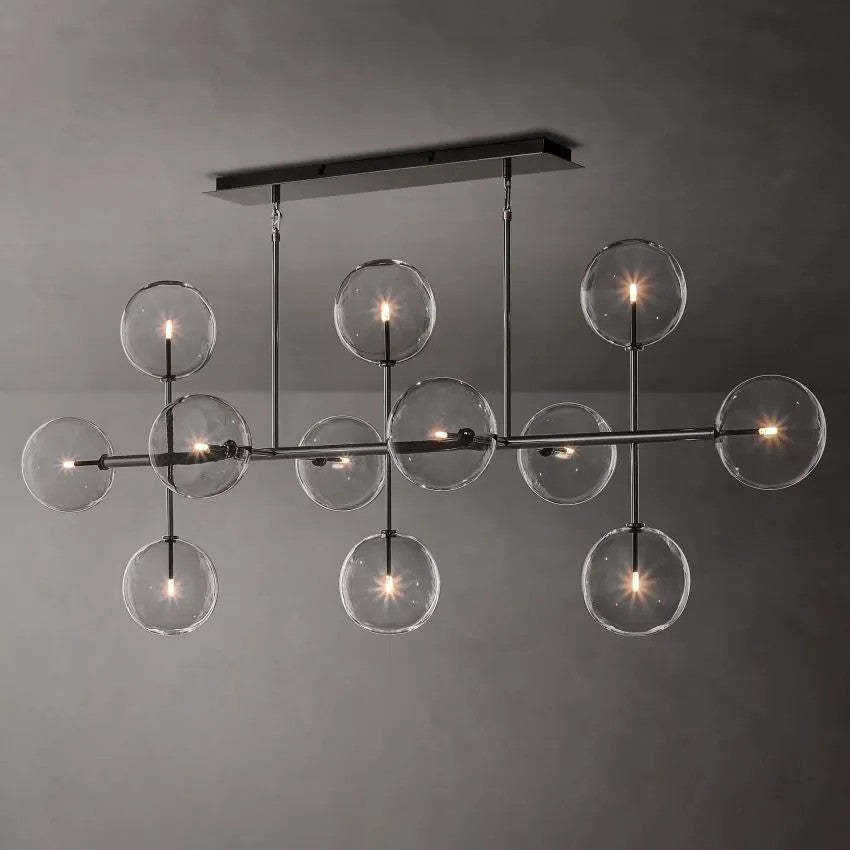 Glass Ball 12 Light Linear Chandelier 72in